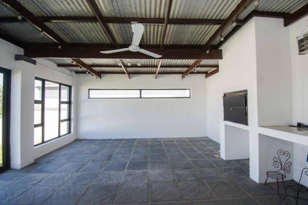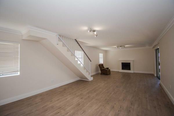 We are delighted to present this modern and impeccably maintained three-bedroom residence, ready for immediate occupancy in Blue Crane Estate. This home has been thoughtfully designed to offer both comfort and sophisticated living. The ground floor features a spacious, open-plan lounge and dining area with laminated flooring, creating a warm and inviting atmosphere. A cosy fireplace adds charm, and doors lead seamlessly into the enclosed entertainment areabraai room, perfect for all-season hosting. The well-appointed kitchen has stylish granite countertops, a convenient gas hob and oven, and ample space for your essential appliances. A practical guest loo is also located on the lower level. Upstairs, you will find three comfortable bedrooms. The main bedroom benefits from a private en-suite bathroom with a shower, while a dedicated family bathroom serves the two secondary bedrooms. The home promotes an effortless indoor-outdoor lifestyle, with the braai room opening onto a well-maintained garden. It is fitted with stacking doors, allowing you to fully embrace the outdoor space. This property is equipped for modern convenience and efficiency, featuring fibre-readiness for high-speed connectivity. A solar geyser, contributing to reduced utility costs. Double automated garage offering direct access, extra storageshelving, and a useful plumbing point. An additional driveway for secure visitor parking.