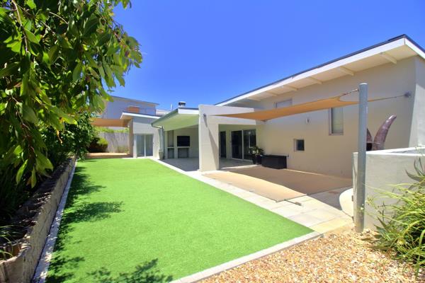Outdoor Living: Sliding doors from the kitchen lead to an under-roof entertainment area with a covered braai and swimming pool, large garden, and artificial lawn low maintenance and perfect for children to play.