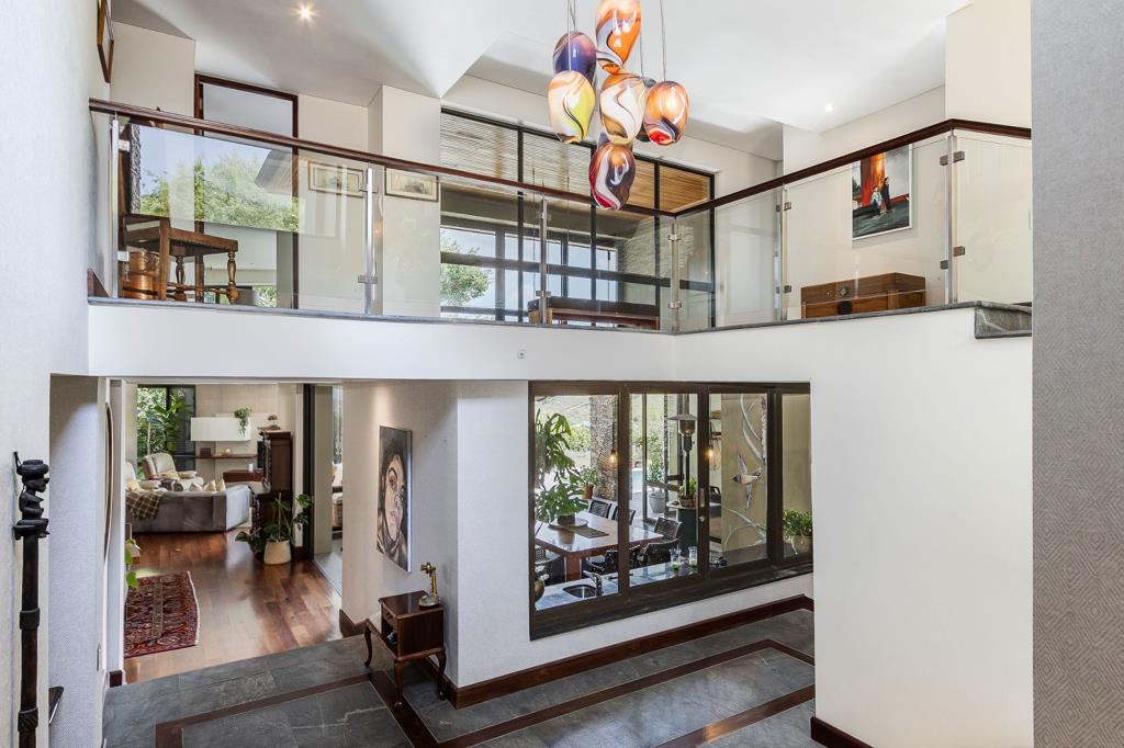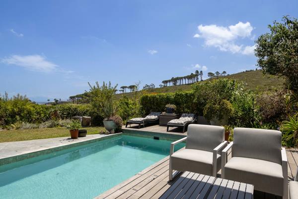 The upper level boasts three bedrooms strategically positioned for ultimate seclusion and breathtaking views. Two generously sized bedrooms share a bathroom on one side of the landing, while the main suite is located on the opposite side for maximum privacy. The main bedroom offers mesmerising views of the mountains and the entire False Bay coastline in the distance.