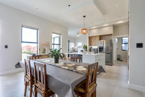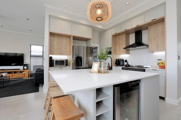 This home offers an Open-Plan Lounge, Dining, and Braai area, three bedrooms all with en-suite bathrooms, a guest toilet, and a study corner.