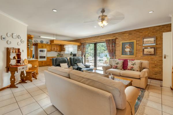 Situated in popular Charisma Park, this spacious home will suit a retired couple or a family as it consists of 4 spacious bedrooms 2 en-suite , another family bathroom, a large lounge with magnificent views, a spacious room with built in braai, a familyTV room as well as a kitchen with separate scullery and pantry open plan to a sizeable dining area. One of the en-suite bedrooms is on the same level as the garage enabling guests to have their own private space. The north facing level garden is big enough to have a pool installed if needed.