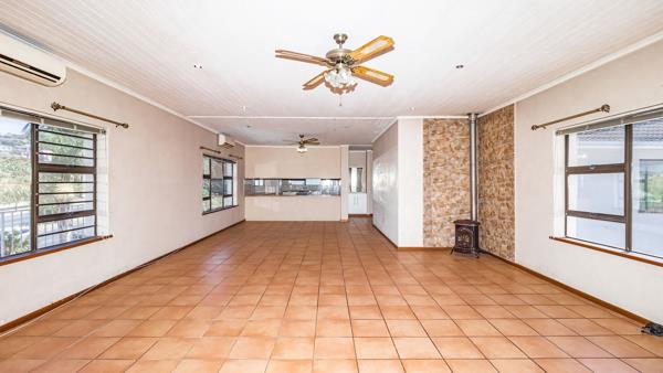 The lower level offers a self-contained suite with a separate entrance. It includes an open-plan lounge and dining area with air conditioner, a functional tiled kitchen with gas hob, appliance points and ample cupboard space. The very large bedroom with laminate flooring also presents room for a study or hobby area. A full en-suite bathroom completes this level. Sliding doors from both the living area and bedroom open onto the pool deck, for easy indoor-outdoor living.