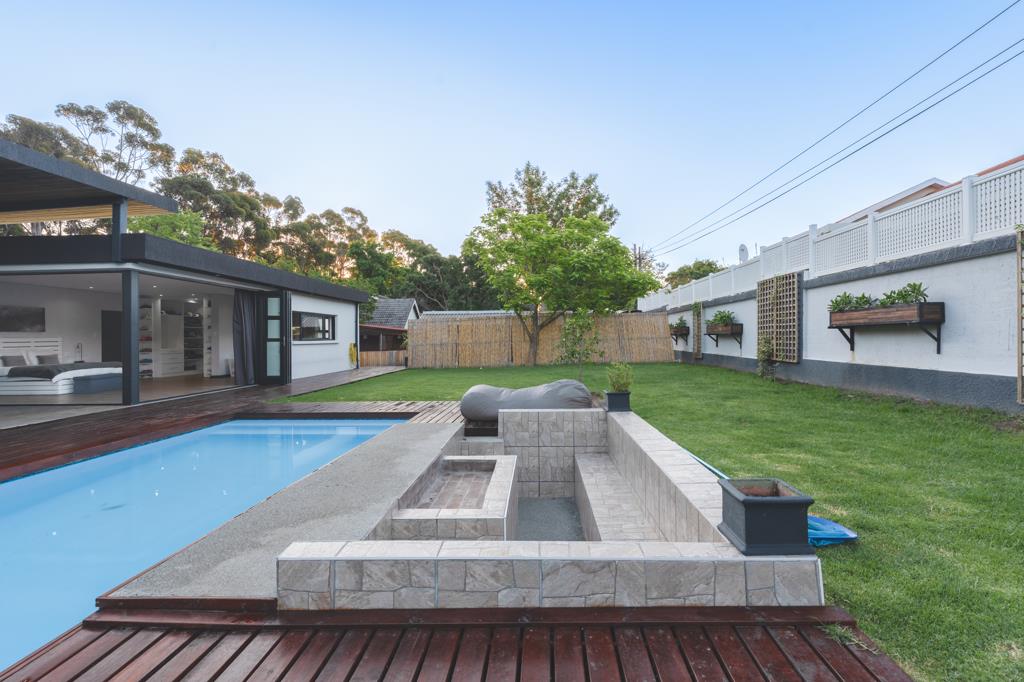 The heart of the home features three spacious en-suite bedrooms and a seamless open-plan layout that flows effortlessly from the living and dining areas into a sleek, modern kitchen. High-end stacking doors open to a covered patio, manicured garden, sparkling pool, and a cozy fire pitideal for relaxed evenings or vibrant entertaining.
