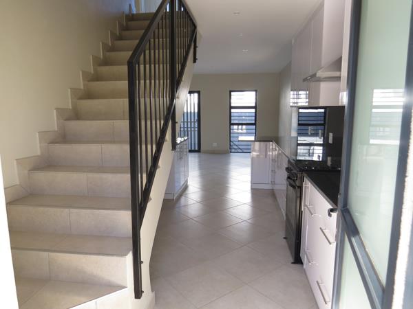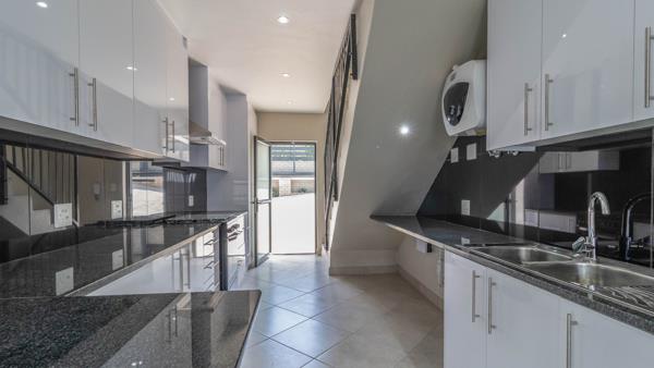 This double storey offers an open plan with build-in braai on the ground floor. The kitchen has granite tops and ample cupboard space. A gas/electric stove with an extractor fan and a 30L geyser for kitchen use.