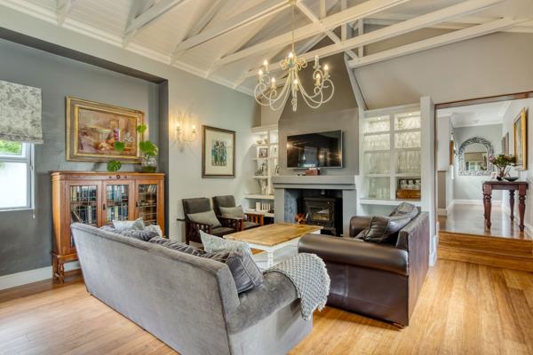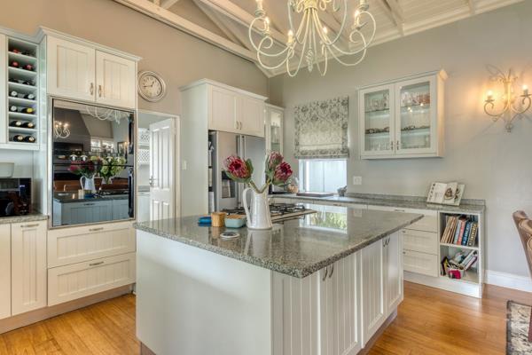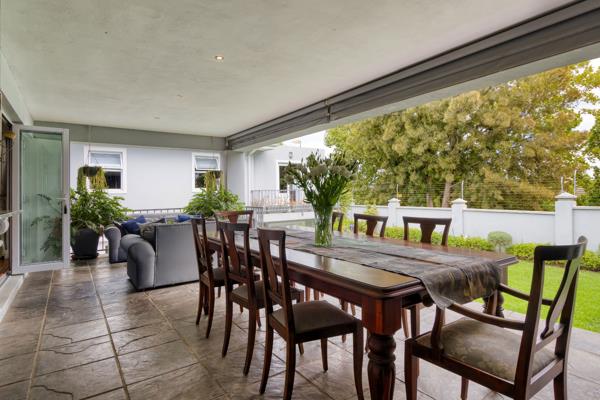 The covered patio with built-in braai and pizza oven overlooks a neat garden and sparkling saltwater pool the ideal spot for relaxed entertaining and summer evenings. A second deck offers additional alfresco dining space.