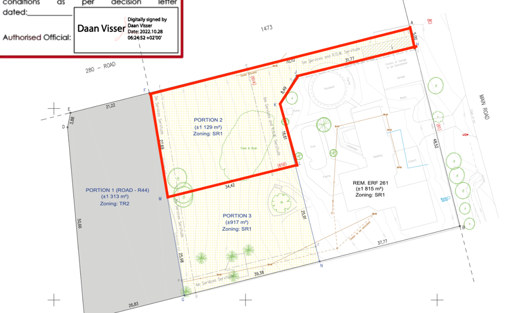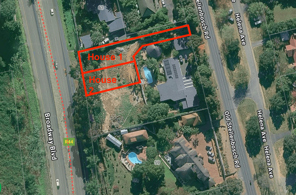 With the existing approvals, the two houses can be developed and sold off individually by opening a sectional title register over the property, allowing each dwelling to have its own title deed.
