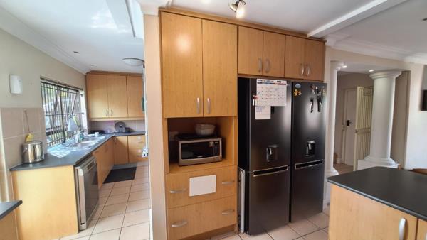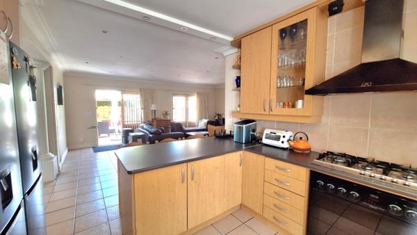 The dining area, partially open to the lounge, creates a comfortable space for family meals or homework. The lounge is bright and spacious, with underfloor heating to keep it cozy during winter, and double doors that lead out to a generous outdoor entertainment area. This space includes a built-in braai, room for both a dining set and lounge seating, and a newly renovated canopy, making it perfect for weekend gatherings, family celebrations, or quiet evenings outdoors.