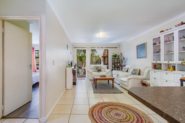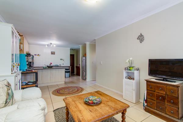 Both bedrooms have new laminate floors and built-in cupboards. There are 2 bathrooms, an en-suite with a shower and a full bathroom. The kitchen and diningliving area are open plan, leading to an enclosed backyard with a built-in braai. There is a single garage with parking for two extra cars in front of the unit.
