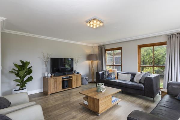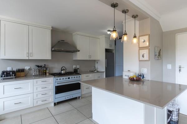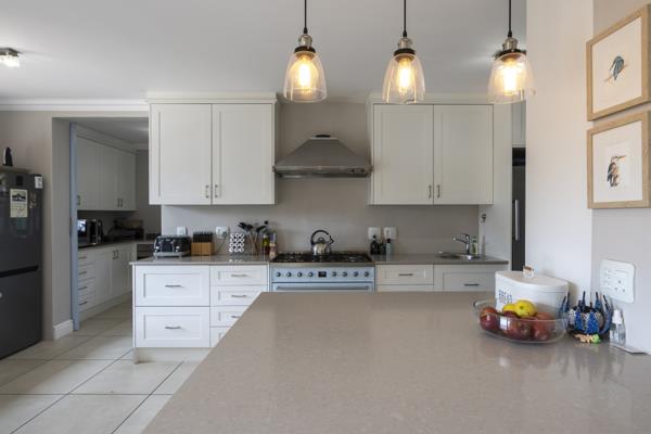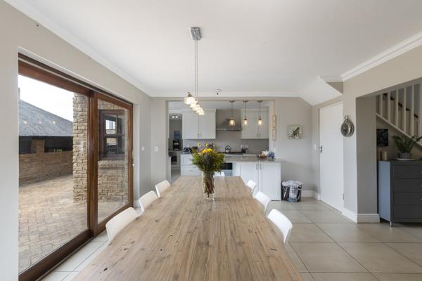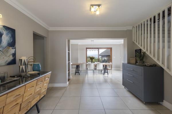 Upstairs offers three bedrooms and two bathrooms. The main suite enjoys views of the Helderberg mountains and features its own en-suite bathroom. The additional two bedrooms share a full family bathroom.