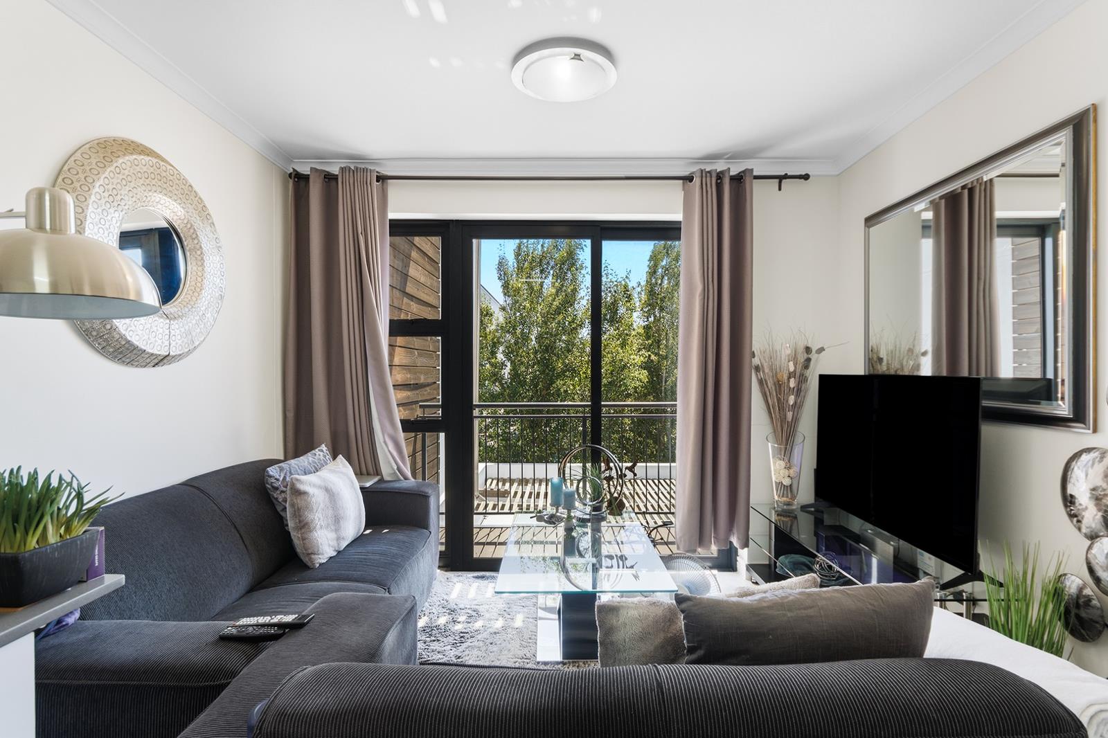 The open-plan lounge and kitchen area enjoys plenty of natural light, with a warm northnortheast-facing aspect that enhances the sense of space in this smart, compact 36 sqm layout.