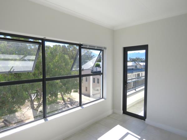 This sunny, north-facing top-floor one-bedroom apartment in the popular Jade Estate offers exceptional privacy and tranquility. Situated in a quiet corner of the development, the unit enjoys views of the Hottentots Holland mountains, while the sheltered patio allows for year-round outdoor living. The apartment features an open-plan lounge and modern kitchen and ample storage, complete with an under-counter oven and hob, and Fridge, a separate walk-through laundry area includes washing machine and dishwasher. The bright, welcoming living area flows onto a private balcony, while the comfortable main bedroom, with generous cupboard space, also opens onto the balcony and is complemented by a stylish modern bathroom.