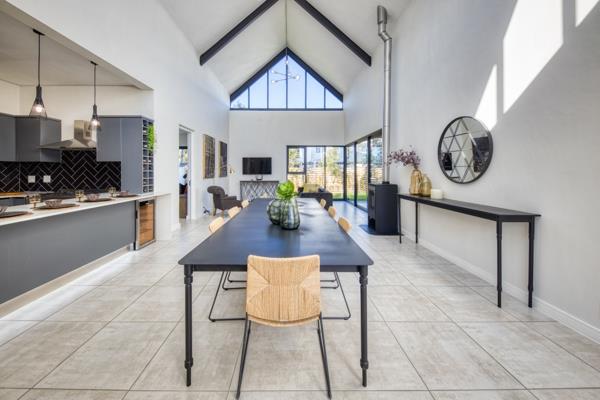 These exquisitely designed Villas offer double garages and come fully equipped with modern amenities including WiFi, DSTV, SMEG appliances, and prepaid utility meters. Upon entry, be greeted by soaring ceilings that add a dramatic flair. The state-of-the-art kitchen dazzles with its ultra-modern double SMEG fridge, a high-performance 5-plate SMEG gas stove, a cutting-edge 3-filter SMEG extractor fan, and an elegant wine fridge, making it a haven for culinary aficionados. The dedicated laundry room is equally impressive, featuring a SMEG washer-dryer combo and a SMEG dishwasher, ensuring that every chore is handled with style and efficiency. This kitchen is a true masterpiece, perfect for those who live to entertain and indulge in the finer things in life. The lavish living area, with its captivating fireplace, seamlessly flows into an undercover patio complete with a built-in braai, perfect for entertaining while overlooking the verdant garden.