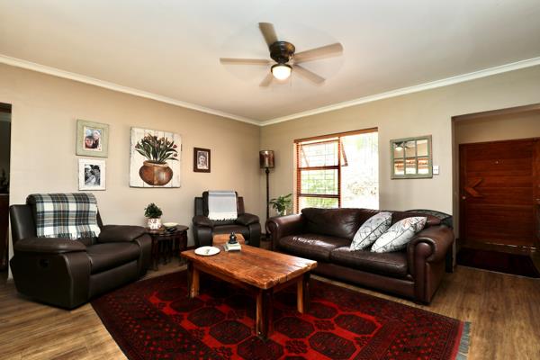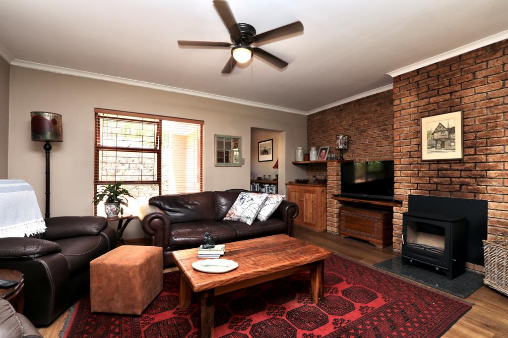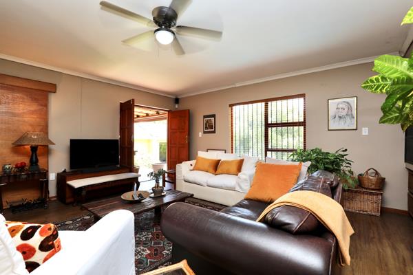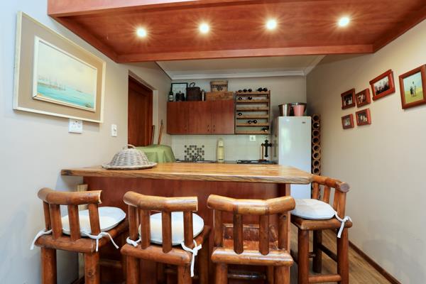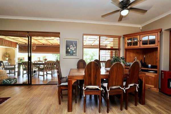 The main open-plan living and kitchen area creates a warm and inviting atmosphere, with a slow-combustion fireplace, ideal for cosy winter evenings. The other living area has an indoor braai for year-round entertaining.