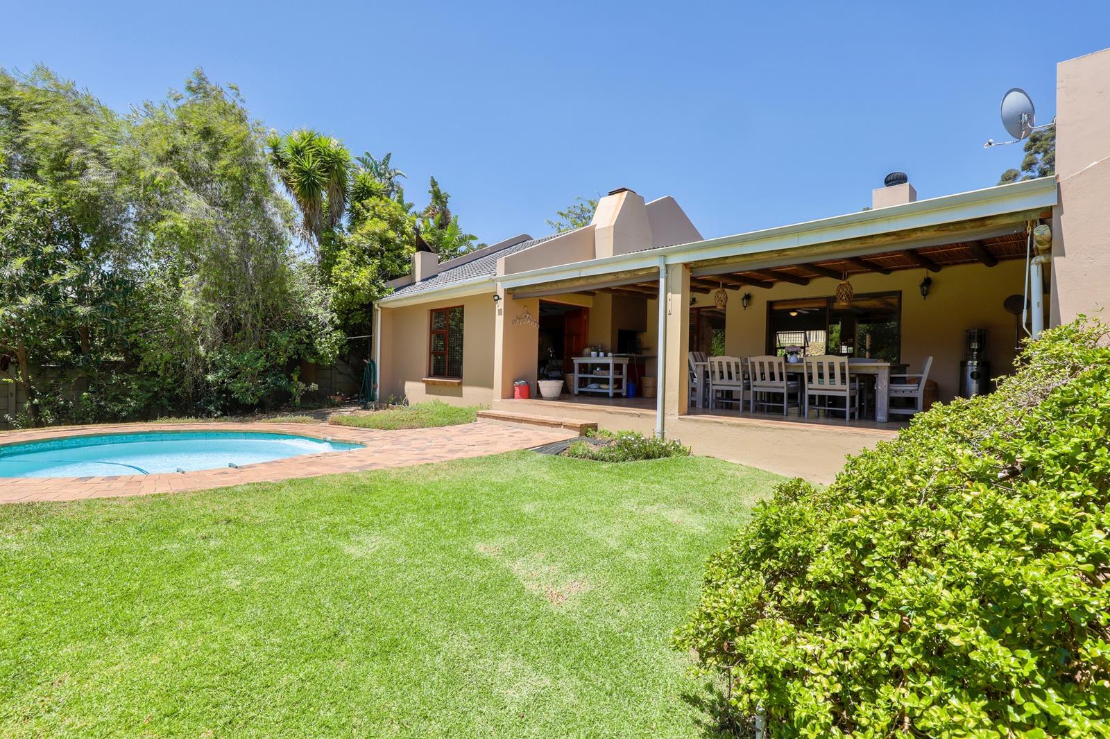 The living areas open onto a private covered patio with a built-in braai and pizza oven, overlooking a swimming pool and a charming boma firepit area perfect for relaxed outdoor entertaining.