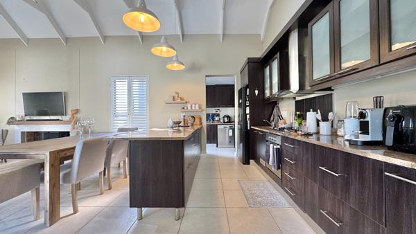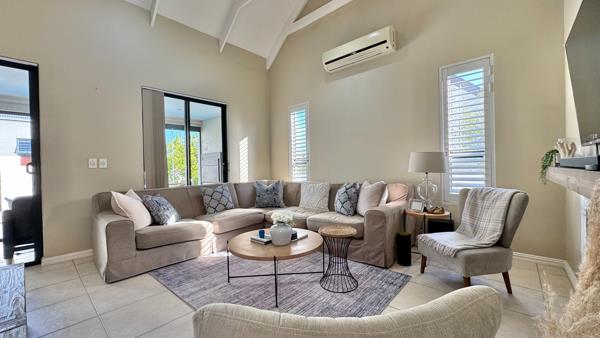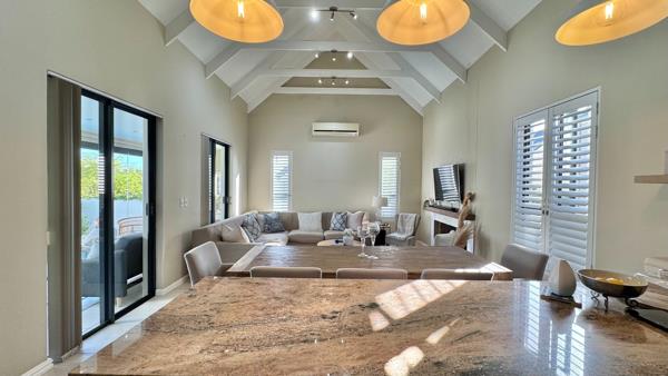 Welcome to this beautifully presented modern family home, perfectly positioned in the heart of the highly sought-after Schonenberg Estate. Designed for comfort, style, and effortless living, this single-level residence offers an inviting flow from the moment you step through the entrance hall. The open-plan living area, accentuated by exposed trusses and a charming wood-burning fireplace, creates a sense of space and warmth ideal for family gatherings. The modern kitchen is a true showpiece, featuring granite countertops, a gas hob, and a separate scullery for added convenience. The enclosed patio with a built-in braai seamlessly extends your entertainment options, overlooking a private, low-maintenance garden complete with artificial grass and a sparkling swimming pool the perfect retreat for summer days.