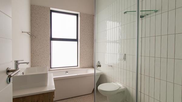 The expansive 189m2 open-plan layout is designed for modern lifestyles, with a contemporary kitchen that includes a central island, elegant stone countertops, a gas hob and oven, and a fully equipped scullery with appliance-ready fittings. The spacious living area is bathed in natural light and enhanced by a combustion fireplace, creating a warm and inviting ambiance throughout the year.
