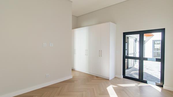 Two of the bedrooms, along with the lounge, open seamlessly onto a serene courtyardperfect for intimate gatherings or relaxed outdoor entertaining. The low-maintenance garden, artfully landscaped with cobbled paving, stone elements, and artificial lawn, offers visual appeal without the upkeep.
