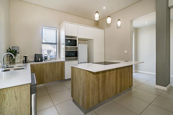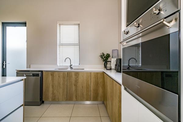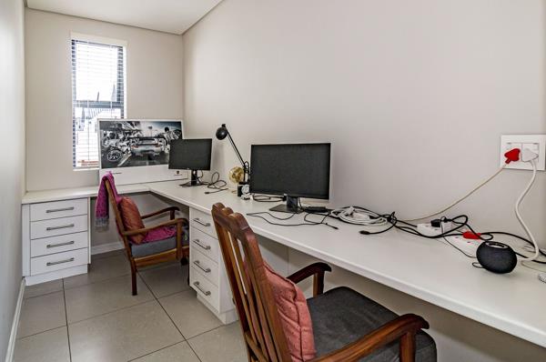 Open plan kitchen and lounge area flows out to patio with built-in braai. The patio has a roll-up canvas enclosure, allowing the area to be opened or closed depending on preference. A separate study area is a great addition and allows ample space to work from home. 3 generously sized bedrooms and 2 full bathrooms round off this well priced, secure family home! Very low maintenance garden with artificial grass installed. The property is currently tenanted until the end of Novemebr 2024.