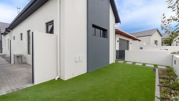 Two of the bedrooms, along with the lounge, open seamlessly onto a serene courtyardperfect for intimate gatherings or relaxed outdoor entertaining. The low-maintenance garden, artfully landscaped with cobbled paving, stone elements, and artificial lawn, offers visual appeal without the upkeep.
