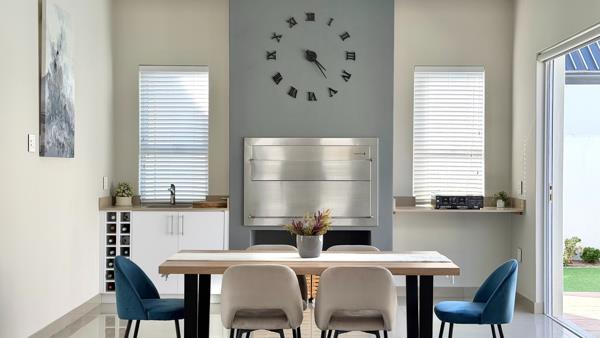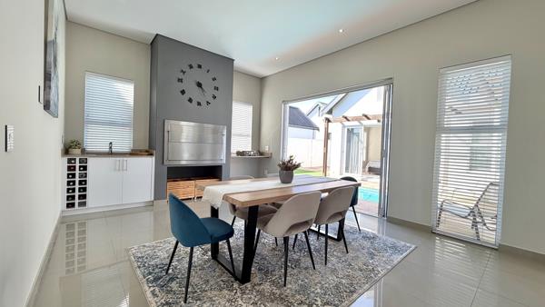 This gorgeous, neat-as-a-pin family home in Sitari Country Estate offers modern comfort and practical living at its best. The home features three well-sized bedrooms and three bathrooms, along with spacious open-plan entertainment areas that flow effortlessly from the living room to the dining and kitchen spaces. The kitchen includes a separate scullery for added convenience, while the built-in braai and sparkling pool create the perfect setting for relaxed family time and hosting guests. A double garage, inverter system, artificial lawn, and low-maintenance garden complete this well-designed property.