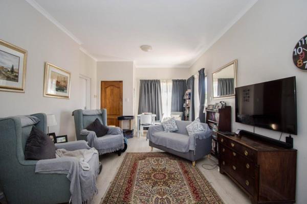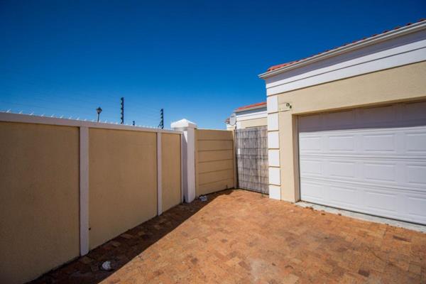 The main bedroom with en-suite bathroom consisting of a shower, toilet, and basin is to the left of the living area, and the other 2-bedrooms are on the other side of the living area and share a full bathroom consisting of a bath , shower, toilet and basin. The double garage has direct access. The garden is bigger than the average unit so ideal for a young family or someone wanting to scale down. The complex has a gate to an open space with a jungle gym.