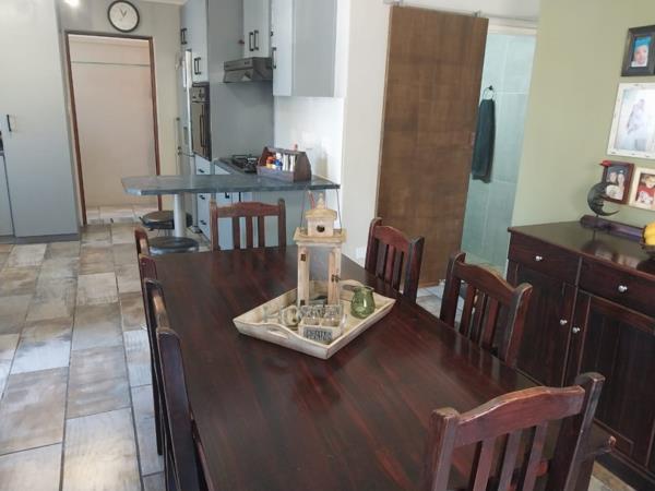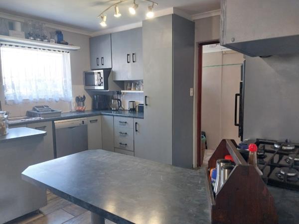 The kitchen features a gas stove and leads into a dining area and spacious living room that opens onto a braai and bar area and mdash perfect for entertaining.