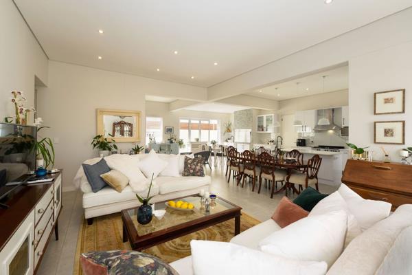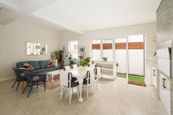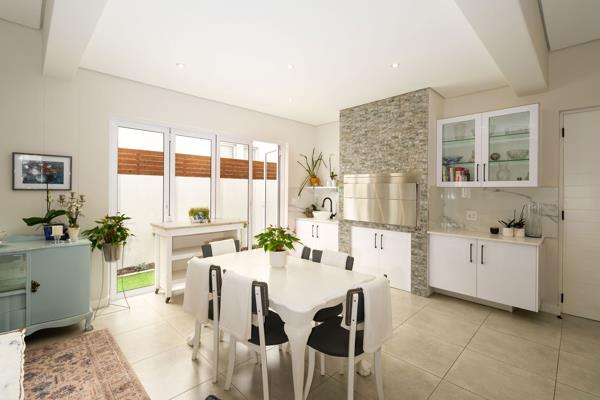 The open-plan living area is light and inviting, with seamless flow between the lounge, dining, and kitchen spaces. An indoor braai area adds to the homes entertainment appeal, making it perfect for year-round gatherings.