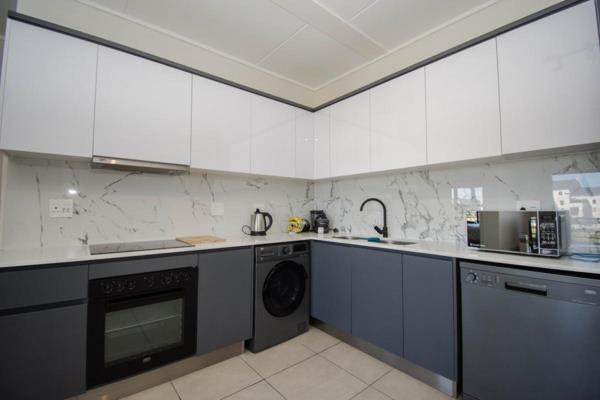 Discover your new space in this 2-bedroom, 2-bathroom apartment, perfectly located in The Huntsman Security Estate. On entering, the open-plan kitchen, dining, and lounge give the feeling of spaciousness, and the glass sliding doors frame the view perfectly. This apartment has both bedrooms en-suite, with showers, and the main bathroom has a linen cupboard - perfect for guests staying over or as dual living. The bedrooms have fitted cupboards and are well-sized. The kitchen has Caesar-stone counters and comes with a fridge, dishwasher, and washing machine, with plenty of cupboard storage space.