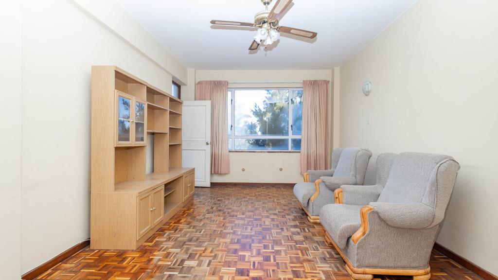 The apartment is newly renovated and has natural parquet flooring. Enter into an Entrance Hall and very spacious Lounge Dining area with a balcony that has lovely mountain views. Spacious Bedroom with built-in cupboards, Bathroom with bath, basin, toilet, tiled floor.