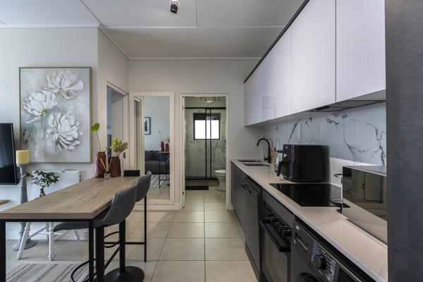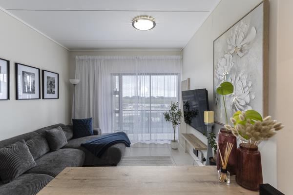 The open-plan living area flows seamlessly onto a private balcony. With modern finishes, secure parking, and a 24-hour security, this apartment offers peace of mind and easy living in a vibrant, well-managed community.