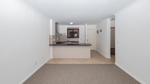 Discover modern living within a secure estate in Somerset West. This inviting two-bedroom, two-bathroom residence offers a harmonious blend of comfort and convenience, ideal for contemporary lifestyles. The open-plan layout seamlessly connects the living area to a compact yet functional kitchen, featuring granite countertops, a tiled backsplash, a built-in oven and hob, and a sleek stainless steel hood. A practical breakfast bar enhances the kitchen''s utility.