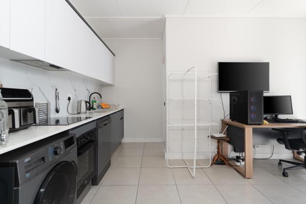 Designed with both comfort and functionality in mind, the apartment features a light-filled open-plan living and dining area that flows seamlessly into a modern kitchen fitted with quality finishes, ample cupboard space, and sleek countertops. The layout is ideal for effortless day-to-day living or as a smart investment opportunity.