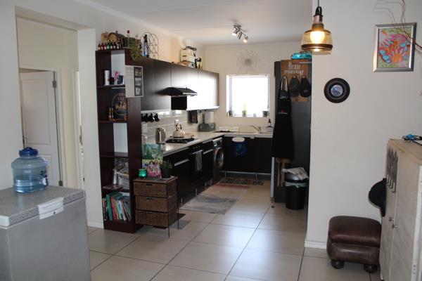 Located in the popular De Velde Estate, this neat apartment features an open-plan kitchen with plenty of cupboard space, plumbing for a dishwasher and washing machine, a gas hob, a built-in oven and white Caesar Stone tops.