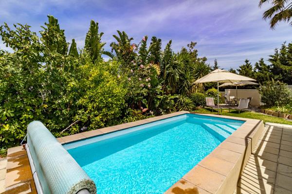 The home features 4 bedrooms and 2 full bathrooms, including a main en-suite, plus a large garden with a heated, salt-chlorinated pool. Additional highlights include a double automated garage with built-in cupboards and excellent natural light throughout.
