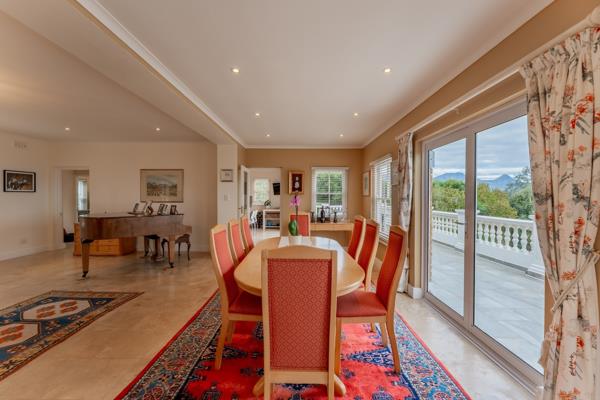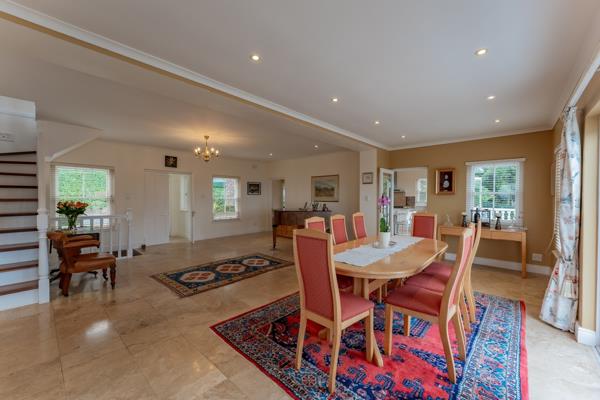 Set high up in Spanish Farm on a large 2700sqm erf with a mature, landscaped garden, the property includes multiple entertainment spaces, a separate kitchen with granite countertops, and seamless indoor-outdoor flow from all ground-floor living areas onto a wide terrace with sweeping views.
