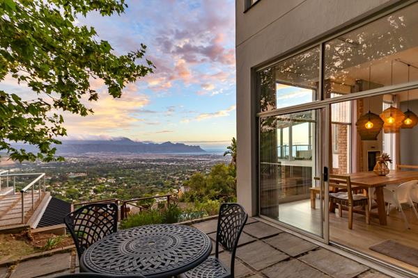 Set on an expansive plot in the prestigious Spanish Farm area, this remarkable home offers uninterrupted 180-degree views stretching across False Bay to the surrounding mountains. Designed for effortless indoor-outdoor living, three beautifully appointed entertainment areas complete with a built-in braai flow onto a patio with panoramic views. Here, ever-changing skies create a truly breathtaking backdrop for relaxed living and unforgettable gatherings.