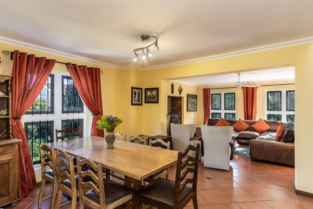 The heart of the home is the open-plan lounge and dining area with a fireplace, seamlessly flowing into the north-facing braai room. With large stacking doors opening up to the lush fynbos, landscaped garden, this space invites indoor-outdoor living and year-round entertaining.