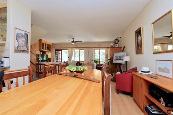Enter down some steps into the open plan dining and living room that flow onto the private patio with views of the lush green belt. The kitchen is seperate with backdoor access to a drying yard and laudry room.Upstairs there are 3 bedrooms, the main has its own en suite and balcony with tree top views.There are built in cupboards and a second bathroom. The bathrooms share a shower that joins them.