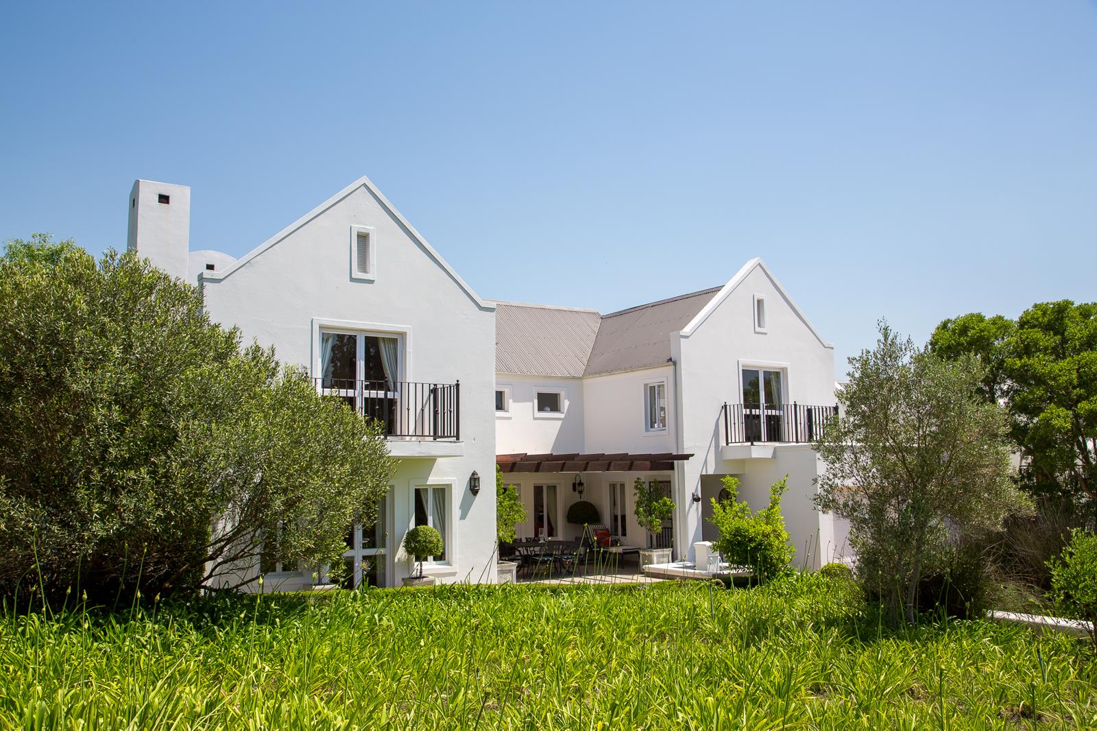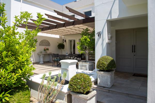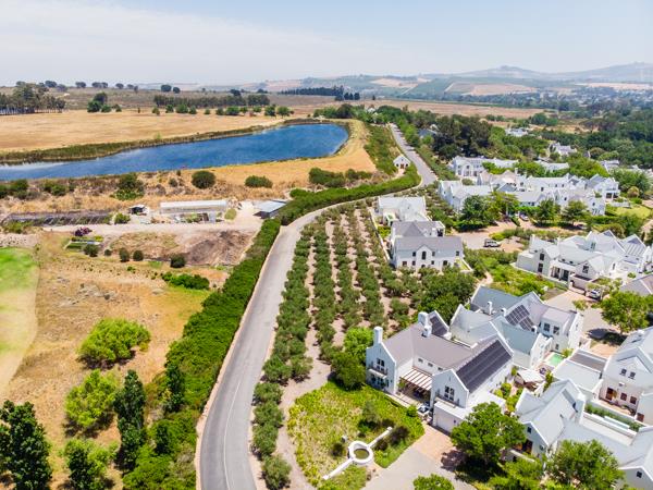 This pristine home is situated in a quiet position on the estate with little passing traffic and only a few surrounding neighbors, with lovely views of the surrounding olive trees and the Stellenbosch mountain tips.