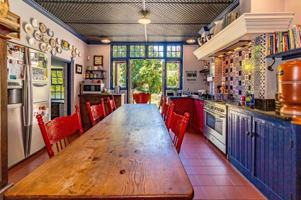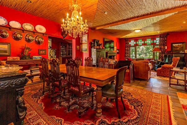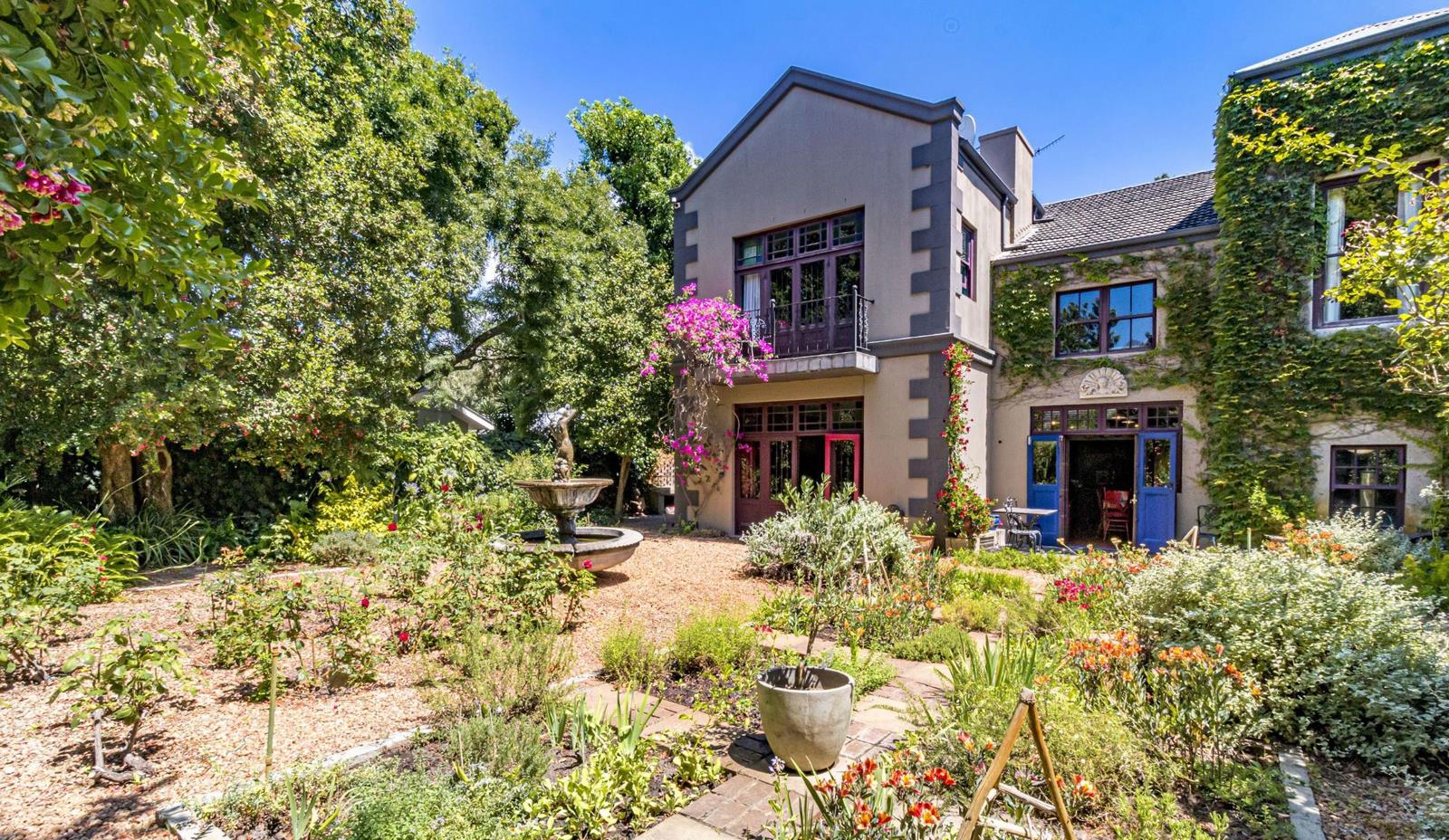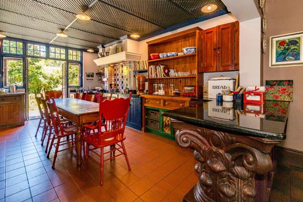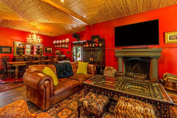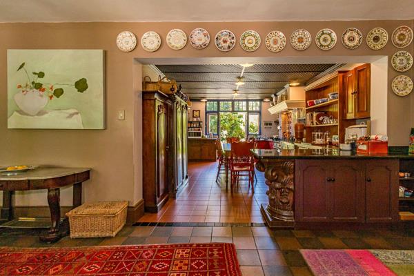 Masterpiece in exclusive area. Pam Golding properties offers with pride this classic double storey masterpiece in one of the most exclusive addresses in Karindal. The home is masterfully designed with a combination of rustic elegance, informal splendour and an overall air of style. Situated on the banks of the Eerste River, overlooking Stellenbosch mountain, this impressive home will entice you. Offering four bedrooms ensuite with high ceilings with exposed trusses and French doors leading onto balconies overlooking the indigenous garden. The chic French-style country kitchen combined with an opulent dining room, impressive lounges and entertainment areas with fireplaces, wine bar and covered patios promise the ultimate opportunity to entertain on a large scale. The two bedroom flat, large scullery and laundromat, store room, three garages, and double carport, bore hole complete all the tick boxes for comfortable living. The attention to detail as far as lighting, glass windows, carved wooden doors creates the picture of care and handpicked bespoke finishes. The large study leads onto the private courtyard encapsulating the essence of this residential area where your home is your haven.