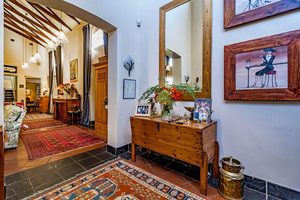 Designed in a timeless farm-style with double-volume ceilings, rustic finishes and generous open-plan living spaces, the home exudes warmth, character and understated luxury. The flowing layout includes three expansive reception rooms, a television lounge with fireplace, a formal lounge with combustion oven, dining area and a spacious kitchen the true heart of the home centered around a ten-seater table, ideal for gatherings and family living, open to a large, covered patio overlooking a private swimming pool and water feature, creating a seamless indoor-outdoor entertainment flow. The home comprises three spacious bedrooms and three beautifully appointed bathrooms, as well as a guest cloakroom. The main suite is a private retreat with a walk-in dressing room, double shower, double basin, lounge area and a balcony with serene views across the river and oak trees. The second bedroom, with its own loungepajama area and kitchenette, offers the flexibility of a guest flat. This lounge area with balcony offers beautiful views onto the Stellenbosch mountain. A third, ground-floor bedroom enjoys a private entrance and patio. Additional features include a welcoming double-volume entrance hall, cozy study, and an impressive wine cellar. Double garage and parking for three vehicles in secure area.