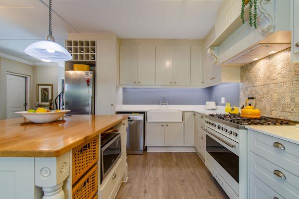 The open-plan kitchen is a culinary masterpiece, seamlessly flowing into the inviting living area and patio. Entertain effortlessly with the built-in braai on the patio, creating a perfect space for al dining and gatherings with friends and family. The kitchen is fitted with high end finishes and a gas SMEG oven.