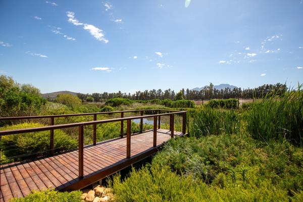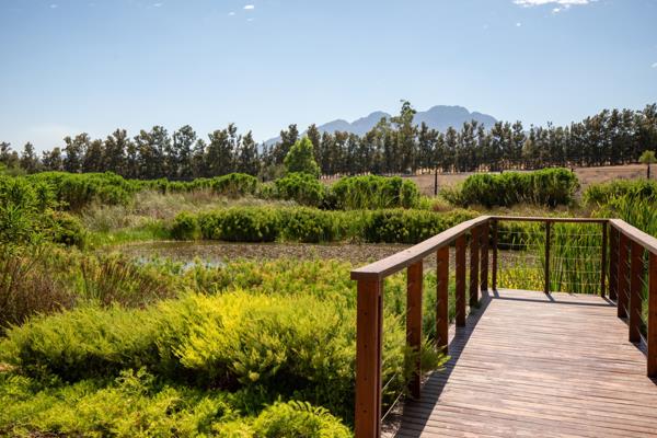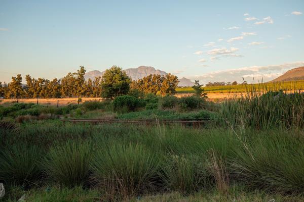Welgegund Domaine Privé: prime front row stand. Prime and exclusive north-east facing vacant stand in this security estate. Sought after and in arguably one of the very best positions on the estate with full unobscured access and enjoyment of the Welgegund wetland. Although the wetland is common property and the HOA maintains it, it serves as being your own beautiful garden, planted with indigenous- and bird attracting plants. With views of vineyards and the beautiful Simonsberg and Stellenbosch Mountain as backdrop, this stand is special and scarce.