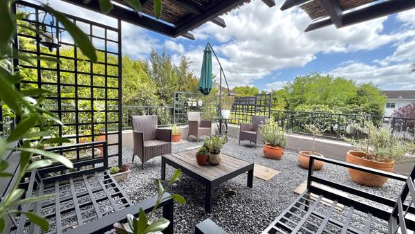 Set on a generous erf, the main residence has been thoughtfully designed with comfort, functionality, and effortless entertaining in mind. Multiple living and dining areas flow seamlessly into tranquil outdoor spaces, while four well-appointed bedrooms, including two luxurious en-suite main suites, provide ample room for larger families or frequent guests. The private garden, sparkling pool, and shaded outdoor areas create a secure, welcoming environment for children and pets.