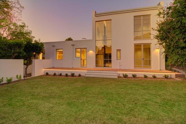 5 spacious bedrooms, each with a modern en-suite bathroomLuxurious main suite with private terrace, dressing room, and panoramic mountain viewsExpansive open-plan living and dining areas with a feature fireplaceDesigner kitchen with integrated appliances, large island, and separate sculleryHome office and library areaBasement wine cellarLandscaped garden with pool and entertainment spaceDouble garage and staff accommodationArt Galley wall in Lounge area.