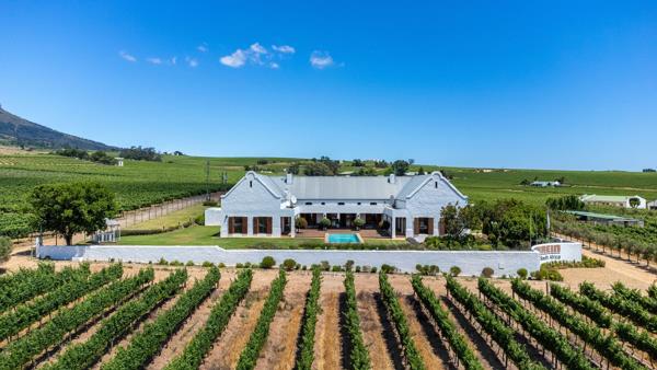 A boutique wine farm in the historic Stellenbosch area with a typical Cape Dutch architectural style homestead that exudes timeless charm and elegance, blending rich history with modern luxury. The farm is located 8 km south of Stellenbosch, in the Golden TRIANGLE between Stellenbosch and Somerset-West and occupies the gently sloping north-western foot-slope of the Helderberg Mountain. With neighbouring farms like the prestigious Rust and Vrede Wine Estate and Alto Wine Estate, this lifestyle-farm presents itself as an exceptional opportunity.