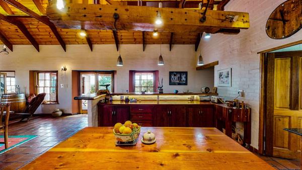 There is a unique natural swimming pool in the garden with a lovely and decked entertainment area and an outside pizza oven. Apart from the mature well established fynbos garden there is a variety of lemon trees and fruit trees, olive trees, a chicken coop and a vegetable patch. There is still more than enough land and space available to keep a horse or two or for small-scale or concentrated agricultural activity.