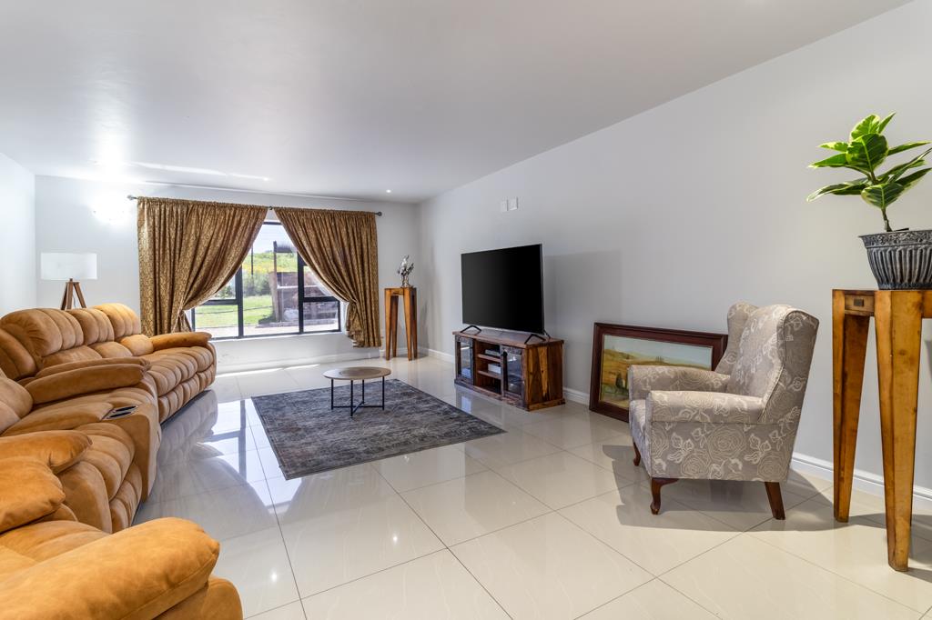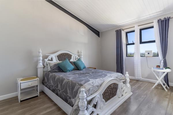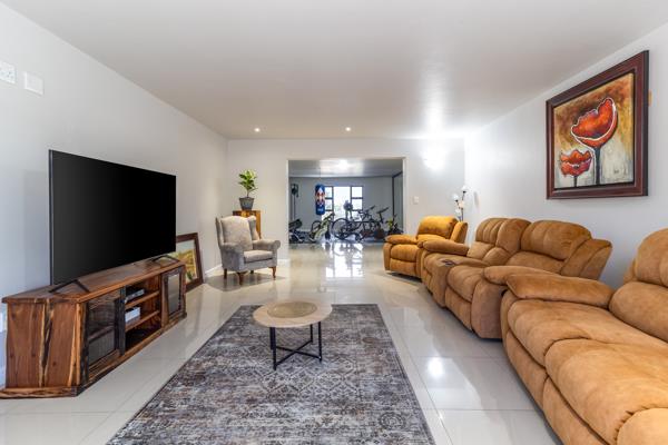 The six-bedroom, six-bathroom double-storey home is currently divided into two fully functional houses but can easily be unified into a home. One wing features a sleek modern design with panoramic mountain views, a gourmet kitchen, spacious dining/living areas, and en-suite bedrooms. The other offers a cosy farm-style atmosphere with an entertainers kitchen, braai, bar, and open-plan living spaces.