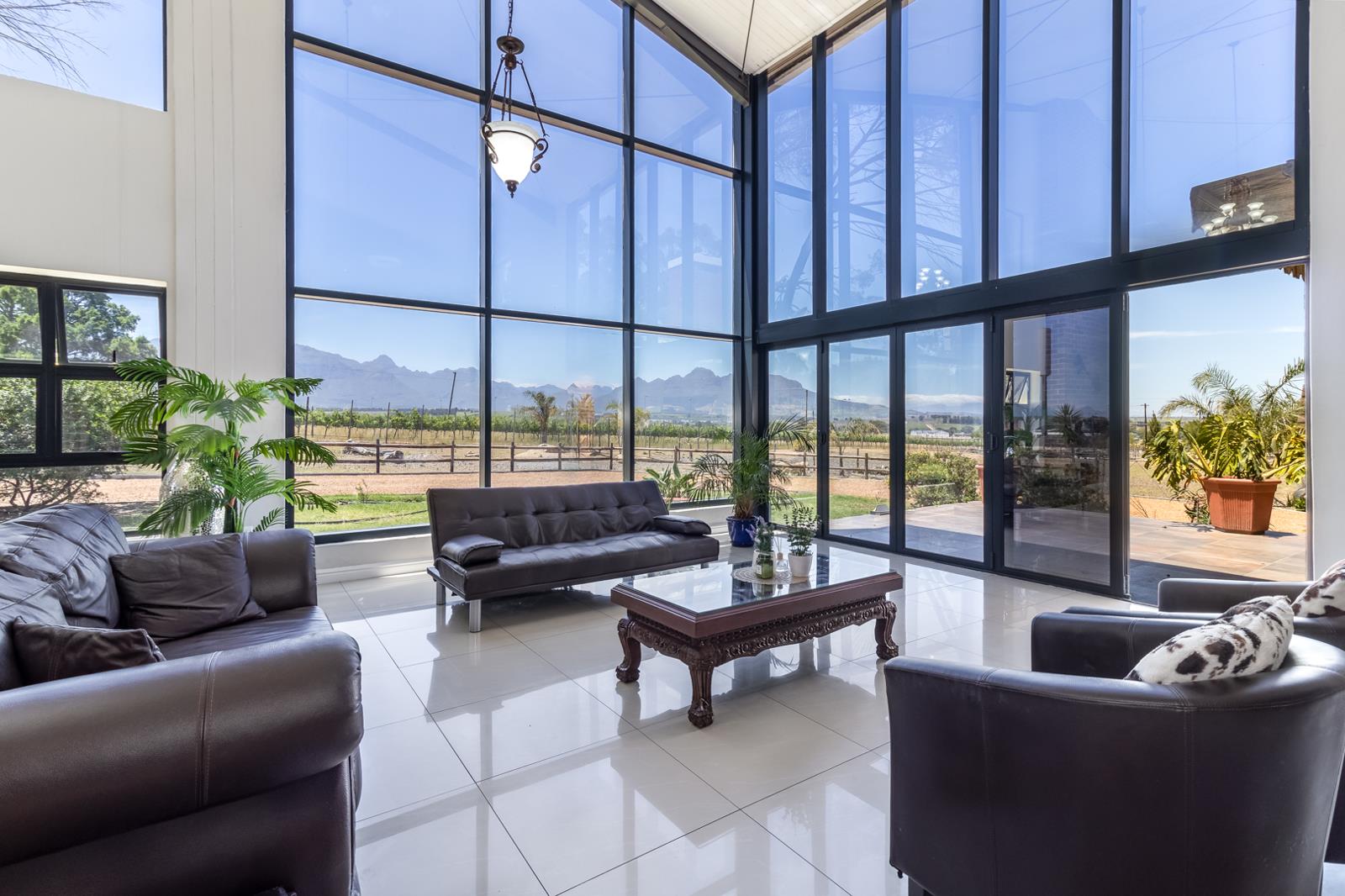 Experience country living just 6 km from Stellenbosch on this 1.5-hectare smallholding surrounded by vineyards and renowned wine estates. This versatile property blends modern and farm-style living, ideal for an extended family, a guesthouse, or a work-from-home layout.
