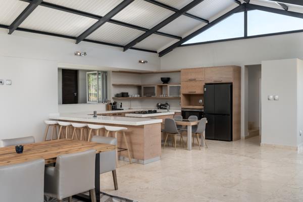 The home boasts a sleek, modern design and features 4 spacious bedrooms. Two bedrooms have ensuite bathrooms, while the other two share a stylish Jack-and-Jill bathroom. Theres also a guest bathroom for added convenience. The open-plan living and dining area is perfect for entertaining and flows seamlessly into a large entertainment room, ideal for hosting guests or enjoying family time.